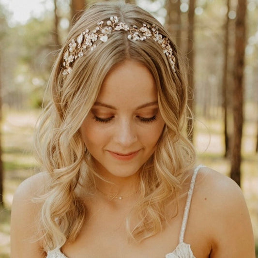 Floral Vintage Crystal Headband Vine Bridal Headpiece with Organza Ribbon Gold or Silver