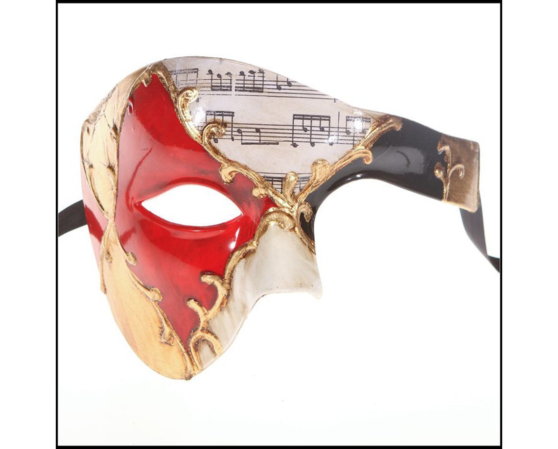 Half Men Face Mask Red Gold Musical Venetian Masquerade Mask Phantom Vintage Design is perfect for Masquerade, Mardi Gras, Wedding, Prom, and Costume Party!